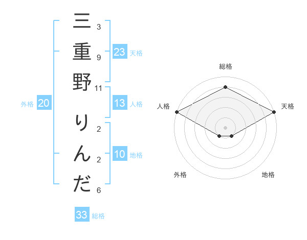 三重野 りんださんの天格は23画の5点!