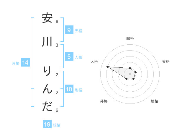 安川 りんださんの総格は19画の1点!