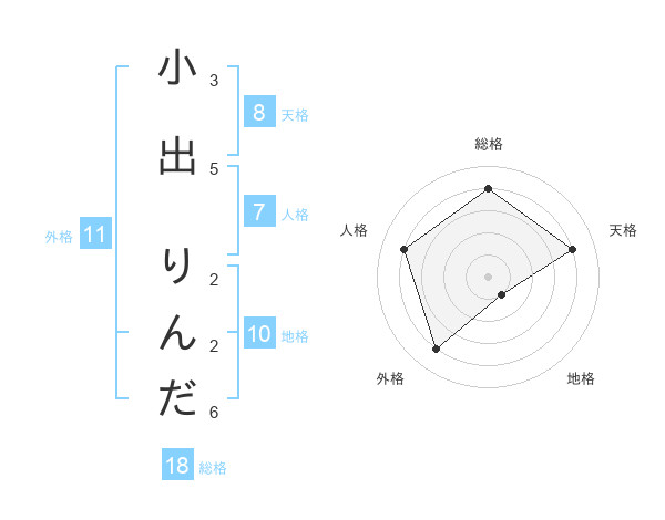 小出 りんださんの総格は18画の4点!
