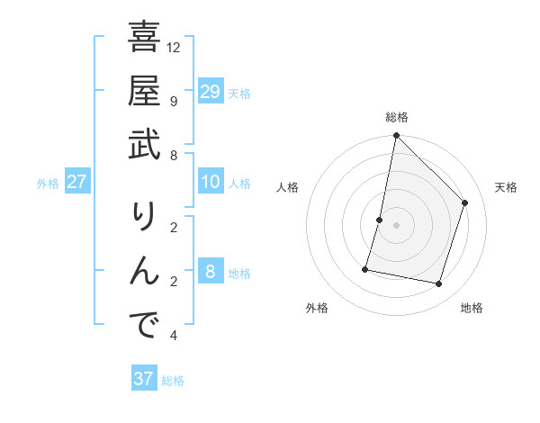 喜屋武 りんでさんの総格は37画の5点!