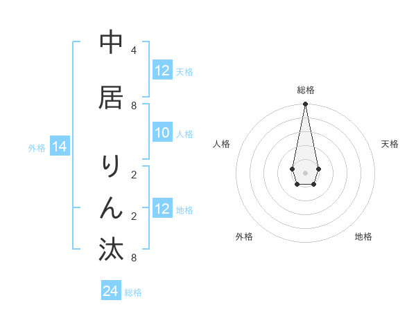 中居 りん汰さんを姓名の画数から五運を鑑定