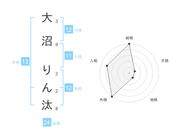 大沼 りん汰さんの総格は24画の5点!