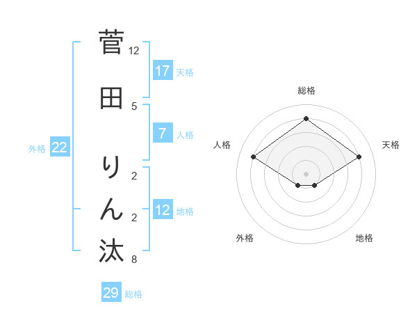 菅田 りん汰さんの総格は29画の4点!