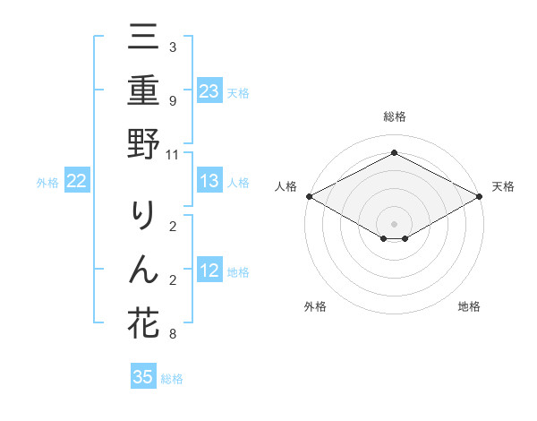 三重野 りん花さんを姓名の画数から五運を鑑定