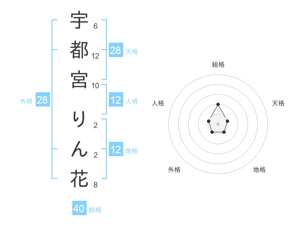 宇都宮 りん花さんを姓名の画数から五運を鑑定