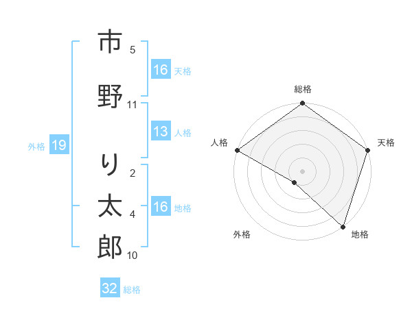 市野 り太郎さんの総格は32画の5点!