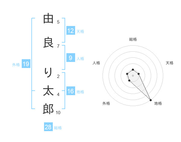 由良 り太郎さんを姓名の画数から五運を鑑定