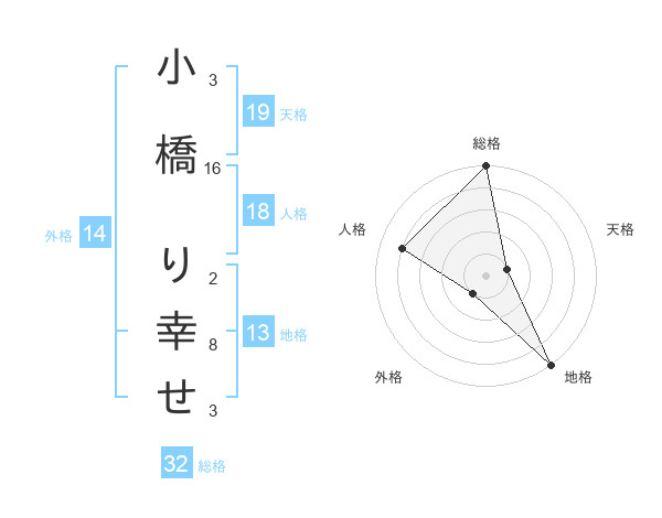小橋 り幸せさんを姓名の画数から五運を鑑定