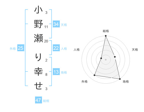 小野瀬 り幸せさんを姓名の画数から五運を鑑定