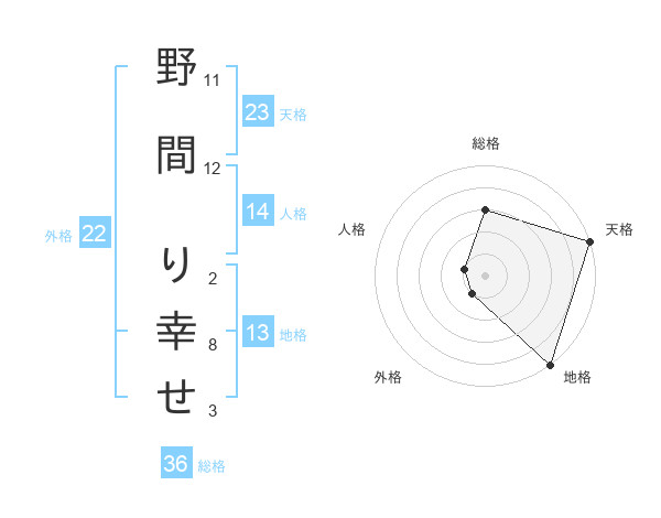 野間 り幸せさんを姓名の画数から五運を鑑定
