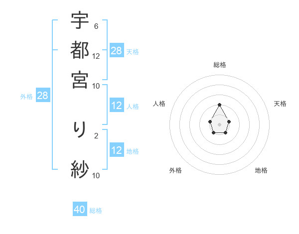 宇都宮 り紗さんを姓名の画数から五運を鑑定