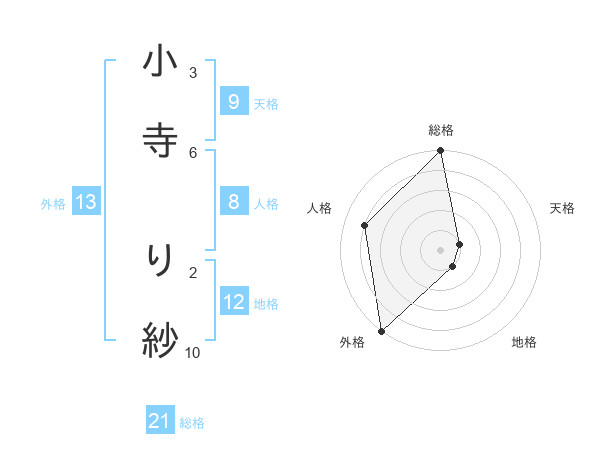 小寺 り紗さんを姓名の画数から五運を鑑定