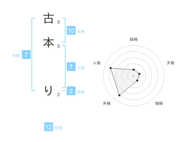 古本 りさんの外格は7画の4点!