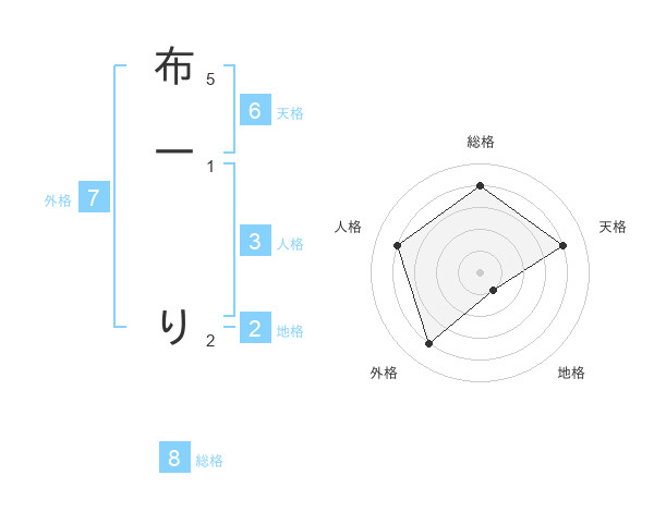 布一 りさんの総格は8画の4点!