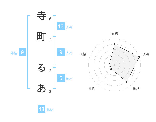 寺町 るあさんの天格は13画の5点!