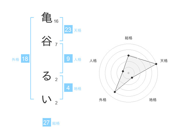 亀谷 るいさんを姓名の画数から五運を鑑定