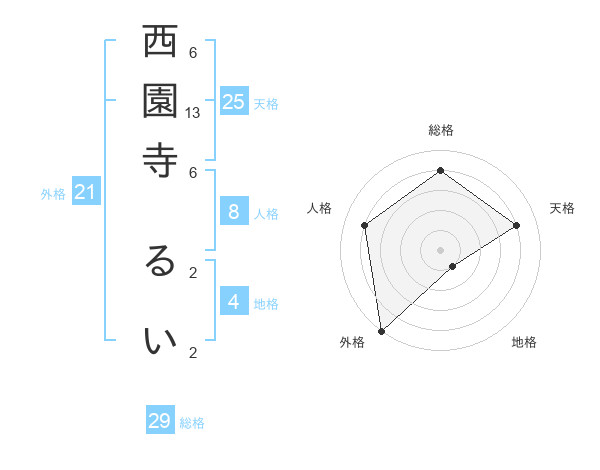 西園寺 るいさんの外格は21画の5点!
