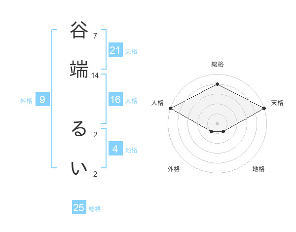 谷端 るいさんの天格は21画の5点!