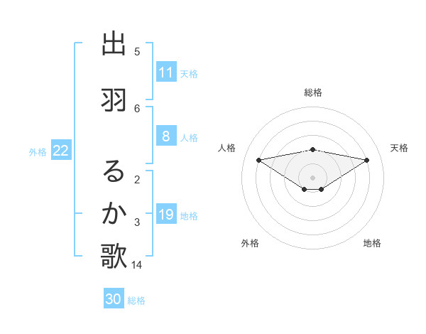 出羽 るか歌さんの総格は30画の2点!