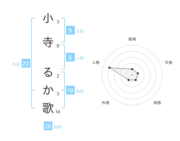 小寺 るか歌さんを姓名の画数から五運を鑑定