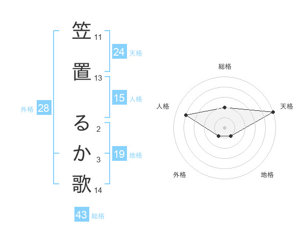 笠置 るか歌さんを姓名の画数から五運を鑑定
