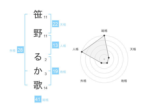 笹野 るか歌さんの天格は22画の1点!