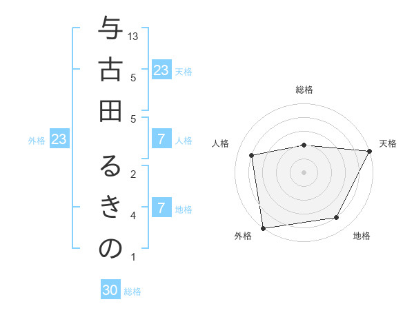 与古田 るきのさんを姓名の画数から五運を鑑定