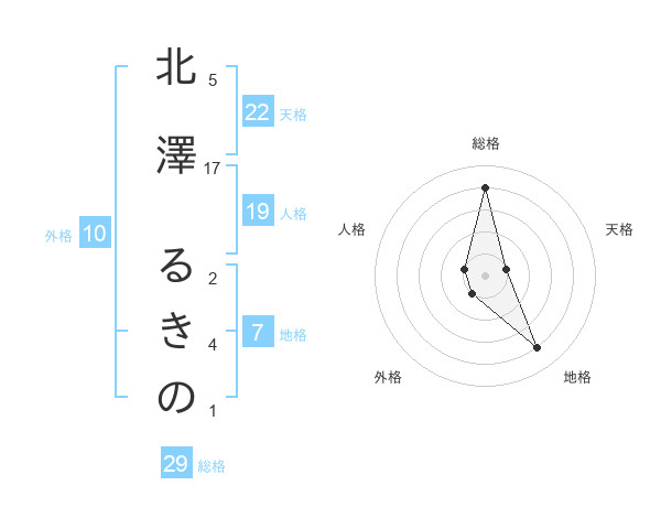 北澤 るきのさんを姓名の画数から五運を鑑定