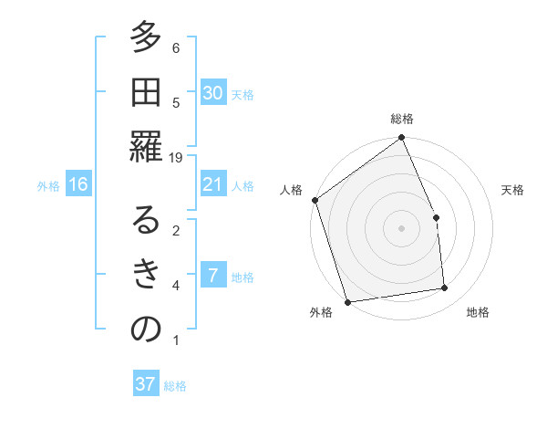 多田羅 るきのさんを姓名の画数から五運を鑑定