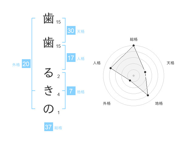 歯歯 るきのさんの総格は37画の5点!