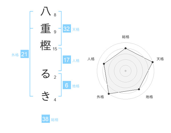 八重樫 るきさんの天格は32画の5点!