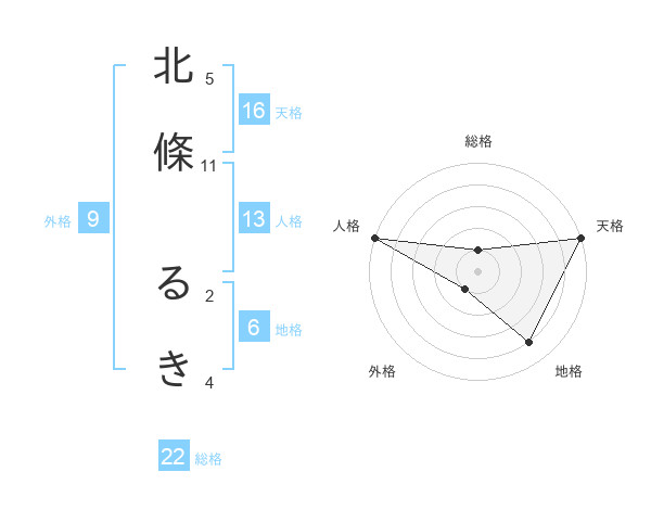 北條 るきさんの天格は16画の5点!