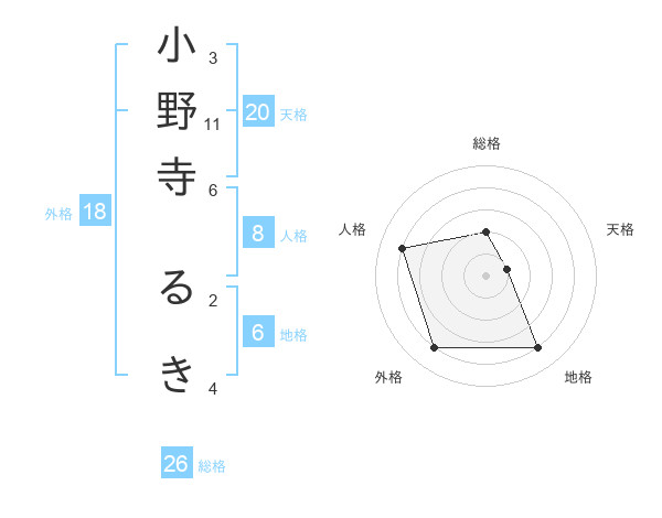小野寺 るきさんの総格は26画の2点!