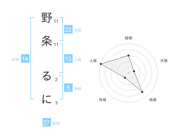 野条 るにさんの総格は27画の3点!
