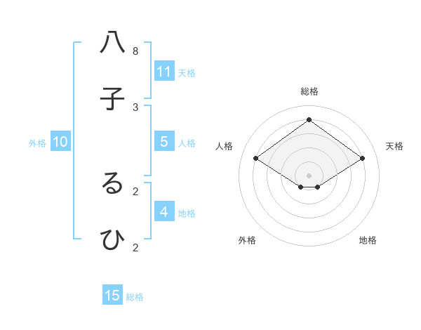 八子 るひさんの総格は15画の4点!