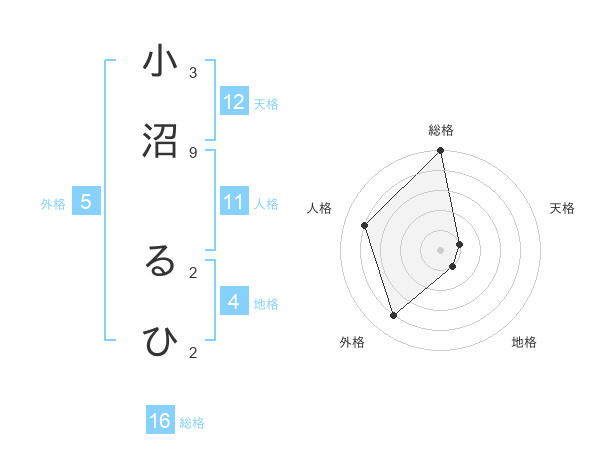 小沼 るひさんの総格は16画の5点!