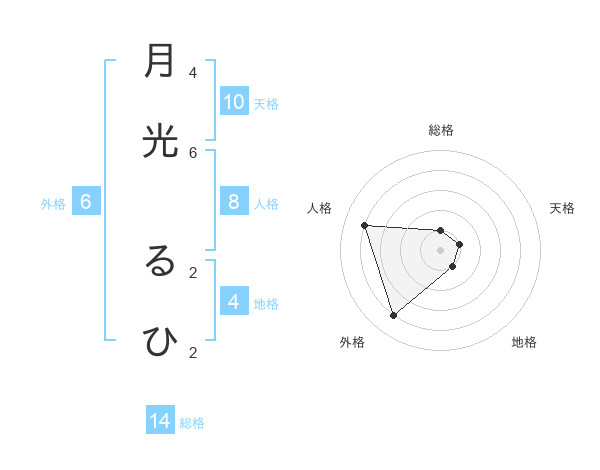 月光 るひさんの総格は14画の1点!