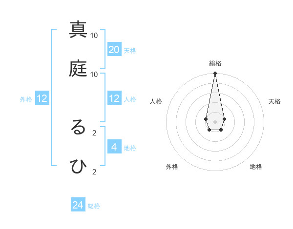 真庭 るひさんの総格は24画の5点!