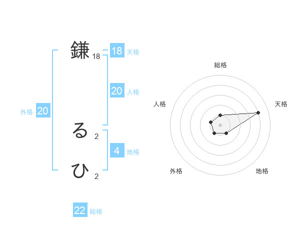 鎌 るひさんの総格は22画の1点!