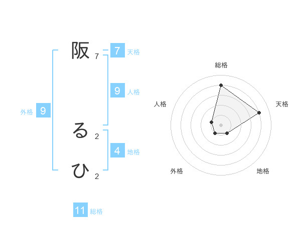 阪 るひさんの総格は11画の4点!