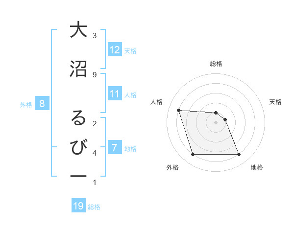 大沼 るびーさんを姓名の画数から五運を鑑定