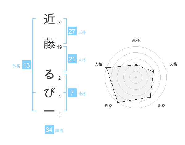 近藤 るびーさんを姓名の画数から五運を鑑定