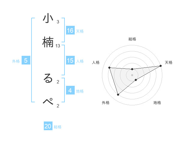 小楠 るぺさんの総格は20画の1点!