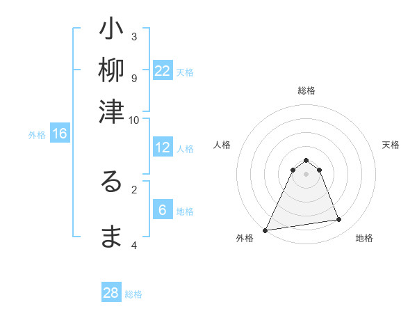 小柳津 るまさんを姓名の画数から五運を鑑定