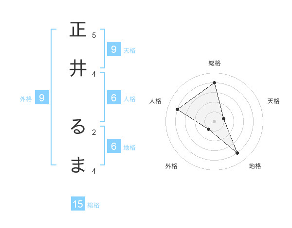 正井 るまさんの総格は15画の4点!