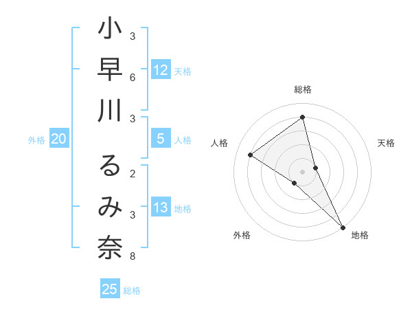 小早川 るみ奈さんの天格は12画の1点!