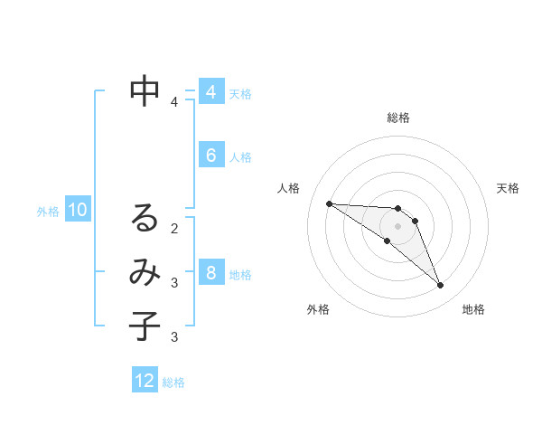 中 るみ子さんの地格は8画の4点!