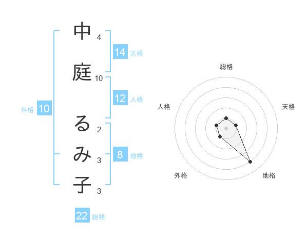 中庭 るみ子さんを姓名の画数から五運を鑑定