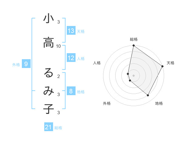 小高 るみ子さんの天格は13画の5点!