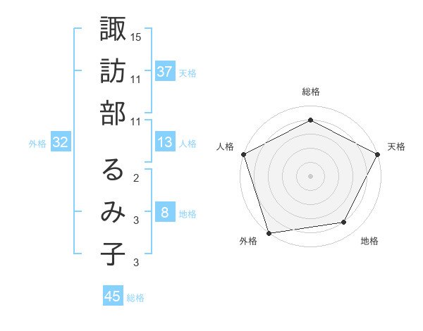 諏訪部 るみ子さんを姓名の画数から五運を鑑定